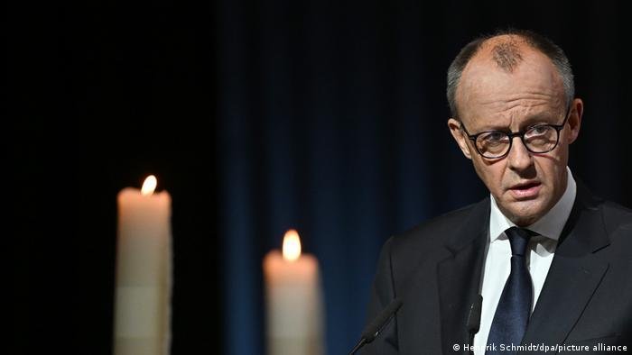 “Raiva e fúria são permissíveis diante de crimes cruéis como este,” disse o chanceler federal alemão, Friedrich Merz, presente na cerimônia.