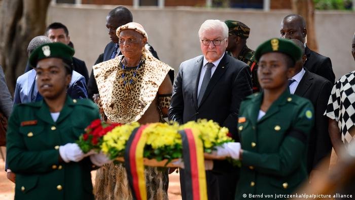 Na terça-feira, no segundo dia da viagem de três dias de Steinmeier à Tanzânia, ele afirmou que a Alemanha consideraria “a repatriação de propriedade cultural e restos humanos”.