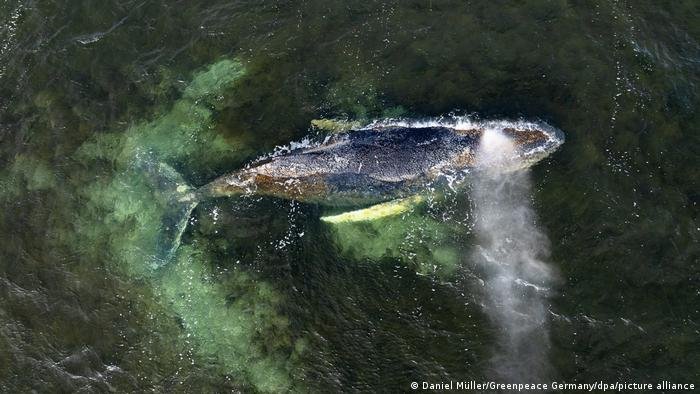 Nenhum rastreador foi acoplado à baleia porque sua pele está em mau estado após longa exposição à concentração relativamente baixa de sal do Báltico.
