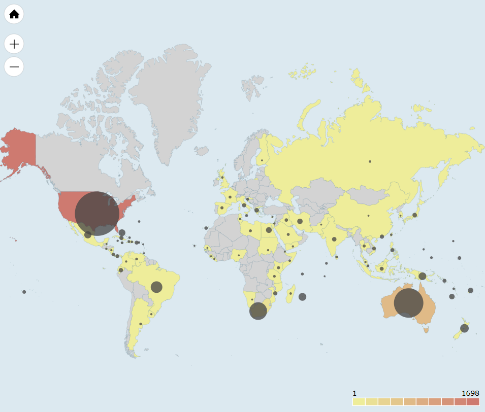 Desde 1580, foram constatados 3.535 ataques em 91 países.