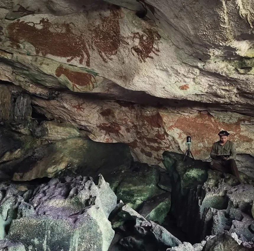 Para estimar a idade das imagens, os pesquisadores analisaram vestígios químicos em crostas minerais formadas sobre as pinturas, conhecidas como “pipoca de caverna”. Os registros de Sulawesi são mais antigos do que a arte rupestre europeia, como a de Lascaux, na França, e um estêncil de mão encontrado em uma caverna espanhola associado a neandertais.