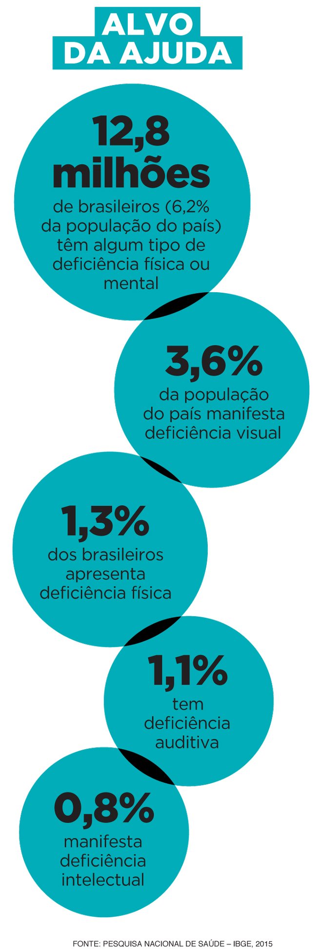 Quando se fala em oportunidade de negócio e de impacto social dentro desse setor, o foco é um mercado potencial de cerca de 12,8 milhões de brasileiros. Segundo a Pesquisa Nacional de Saúde (PNS), divulgada em 2015 pelo Instituto Brasileiro de Geografia e Estatística (IBGE), 6,2% da população do país possui algum tipo de deficiência. A deficiência visual, a mais representativa, atinge 3,6% dos brasileiros. Em seguida vêm as deficiências física (1,3%), auditiva (1,1%) e intelectual (0,8%).