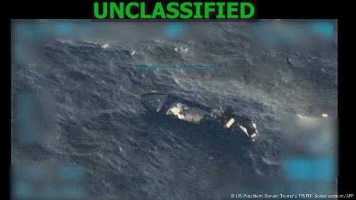 O chefe do Pentágono informou que dois supostos “narcoterroristas” morreram na operação. Um vídeo divulgado pelo governo americano mostra quando a munição atinge a lancha, destruindo-a completamente.