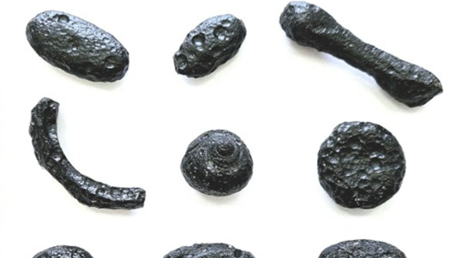 Embora aparentem ser negros e opacos, sob luz intensa eles tornam-se translúcidos, com uma coloração verde-acinzentada. As formas são aerodinâmicas, incluindo estruturas esféricas, elipsoidais, em gotas, discoides, torcidas ou semelhantes a halteres.
