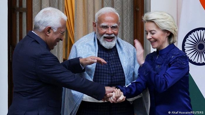 Líderes de UE e Índia esperam que o acordo, que Nova Déli afirma ter sido finalizado nesta segunda-feira, ajude a proteger ambas as partes dos desafios impostos pela concorrência chinesa e pelas tarifas comerciais dos Estados Unidos.