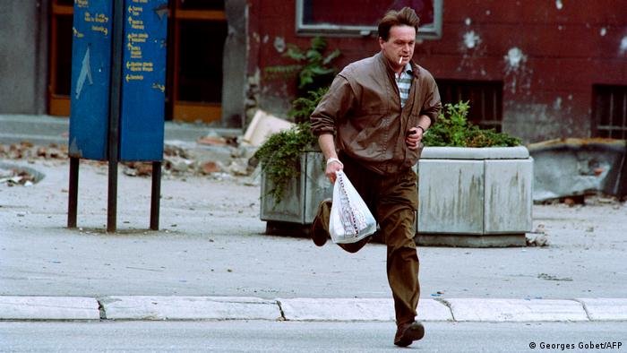 Parte crucial da Guerra da Bósnia , o cerco de Sarajevo deixou 11,5 mil mortos e 60 mil feridos e ficou marcado pelos constantes ataques de snipers a civis. Atiradores de longa distância se posicionavam nos montes que cercam a cidade e disparavam de forma aleatória contra a população sitiada.