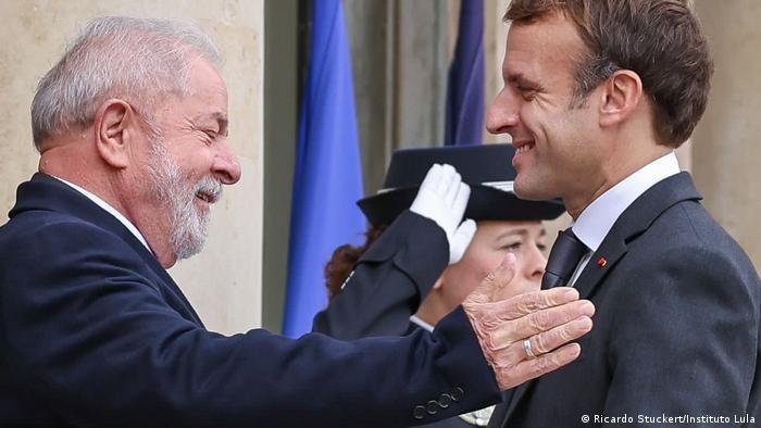 “Estamos vivendo um dia muito feliz, porque conseguimos resgatar a democracia”, disse Lula, de acordo com um vídeo publicado pelo presidente francês no Twitter.