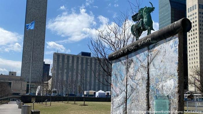 Isso é especialmente verdade no caso dos EUA, que hoje têm mais pedaços do Muro de Berlim do que a própria Berlim, segundo estimativas da Fundação Federal para o Estudo da Ditadura do SED [Partido Socialista Unitário da Alemanha, que governava a RDA]. Seja em frente à sede da CIA em Langley ou em um banheiro masculino em Las Vegas, os fragmentos podem ser encontrados em todo o país.