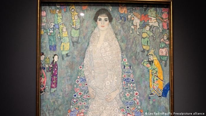 A obra de arte de 1,8 metro de altura mostra a filha do principal mecenas de Klimt, membro de uma das famílias mais ricas de Viena, vestida com roupas de inspiração chinesa, em pé diante de uma tapeçaria azul com motivos de inspiração asiática.