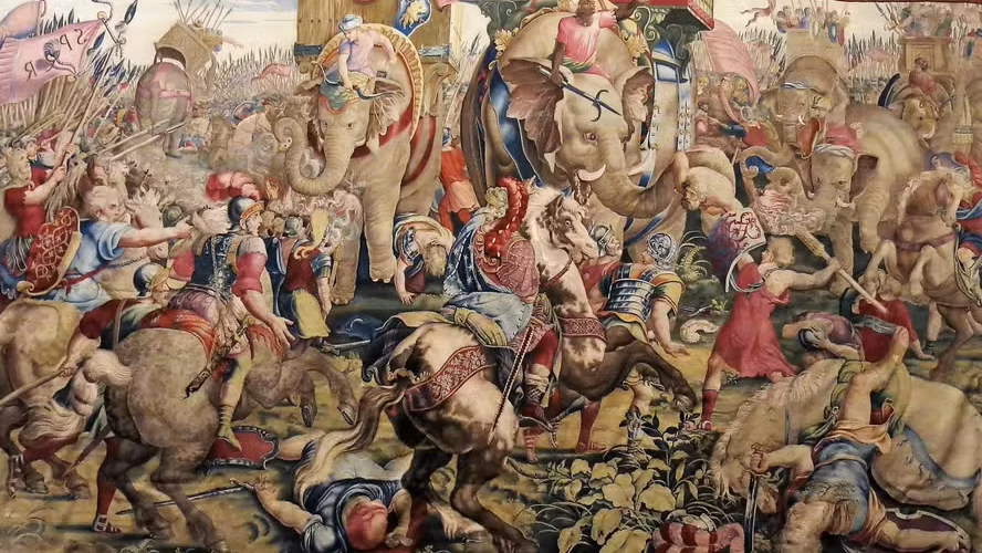 A Segunda Guerra Púnica opôs a República Romana e Cartago pelo controle do Mediterrâneo. Embora muitos dos elefantes não tenham sobrevivido à travessia alpina, o exército de Aníbal obteve vitórias importantes, como a Batalha de Canas (216 a.C.), onde derrotou os romanos, mesmo com contingente menor.