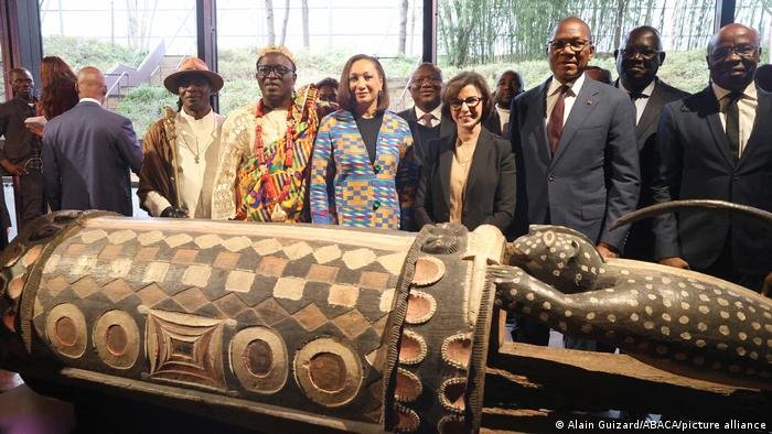 “É um dia histórico, e estou profundamente emocionada”, afirmou Françoise Remarck, ministra da Cultura e da Francofonia da Costa do Marfim, durante a cerimônia, que foi acompanhada por canções tradicionais e danças de guerra.