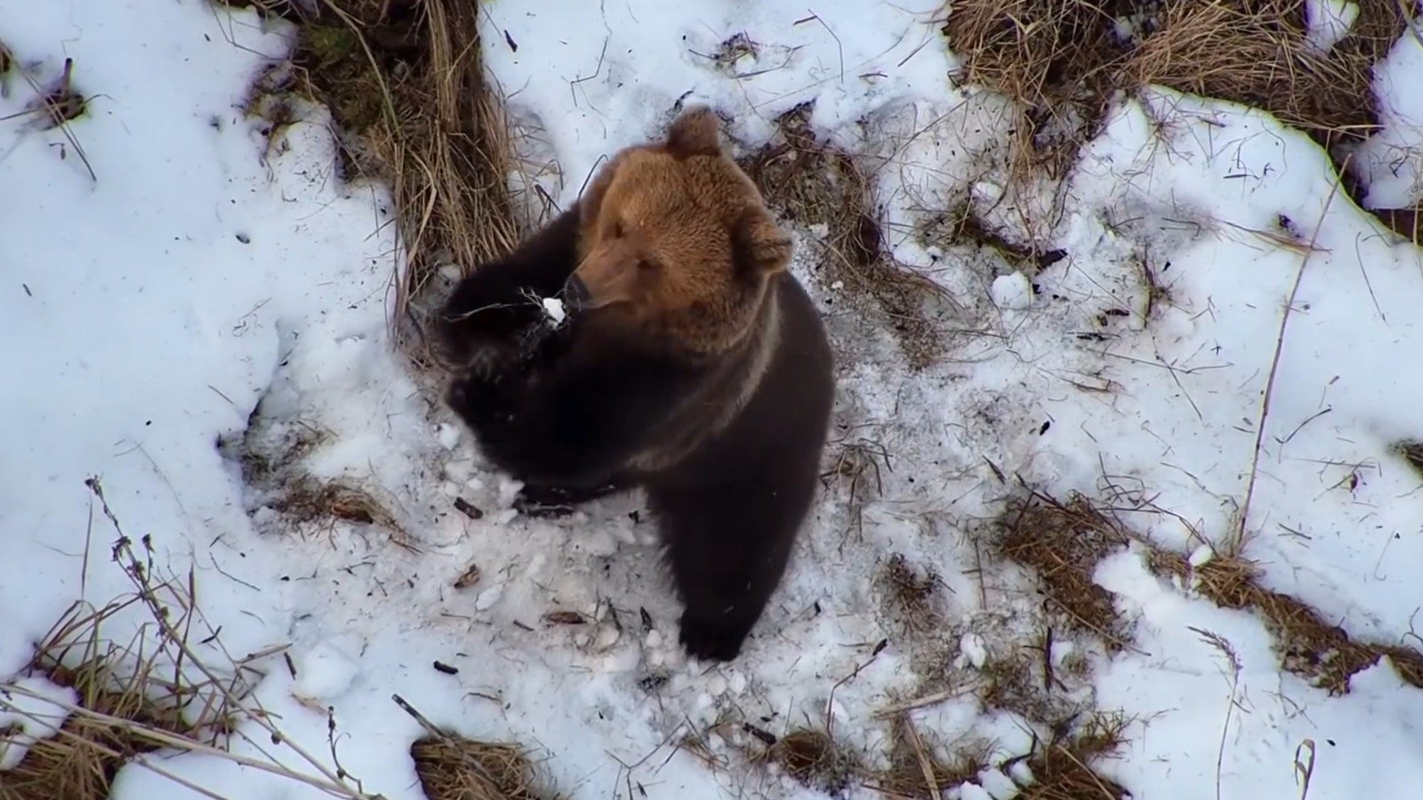Um drone utilizado nas operações de busca por um homem desaparecido na região de Tartu, na Estônia, capturou imagens de um urso pardo despertando do período de hibernação. O registro, feito no sábado, 7, pelo grupo MTÜ LEIA, mostra o animal interagindo com a neve em uma área de floresta.